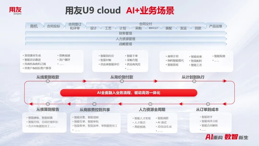 用友U9 Cloud作为聚焦制造业17年的数智化平台,通过深度融合AI技术与制造业场景,构建了覆盖研发、生产、供应链、财务等全流程的智能解决方案,成为企业实现“更低成本、更优质量、更高效率、更快出海”的核心引擎。