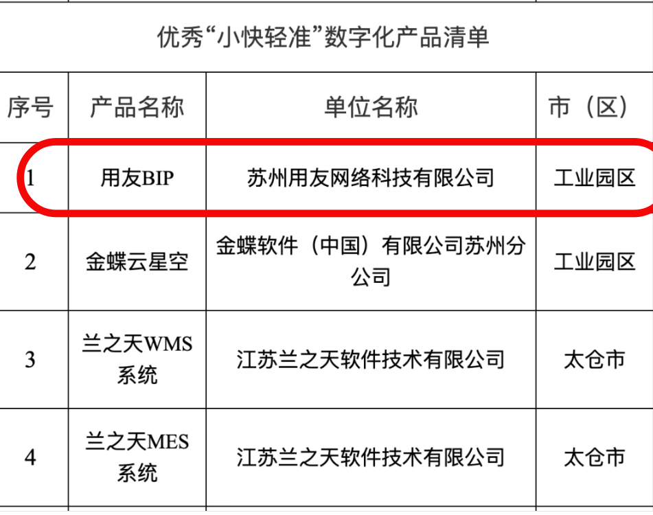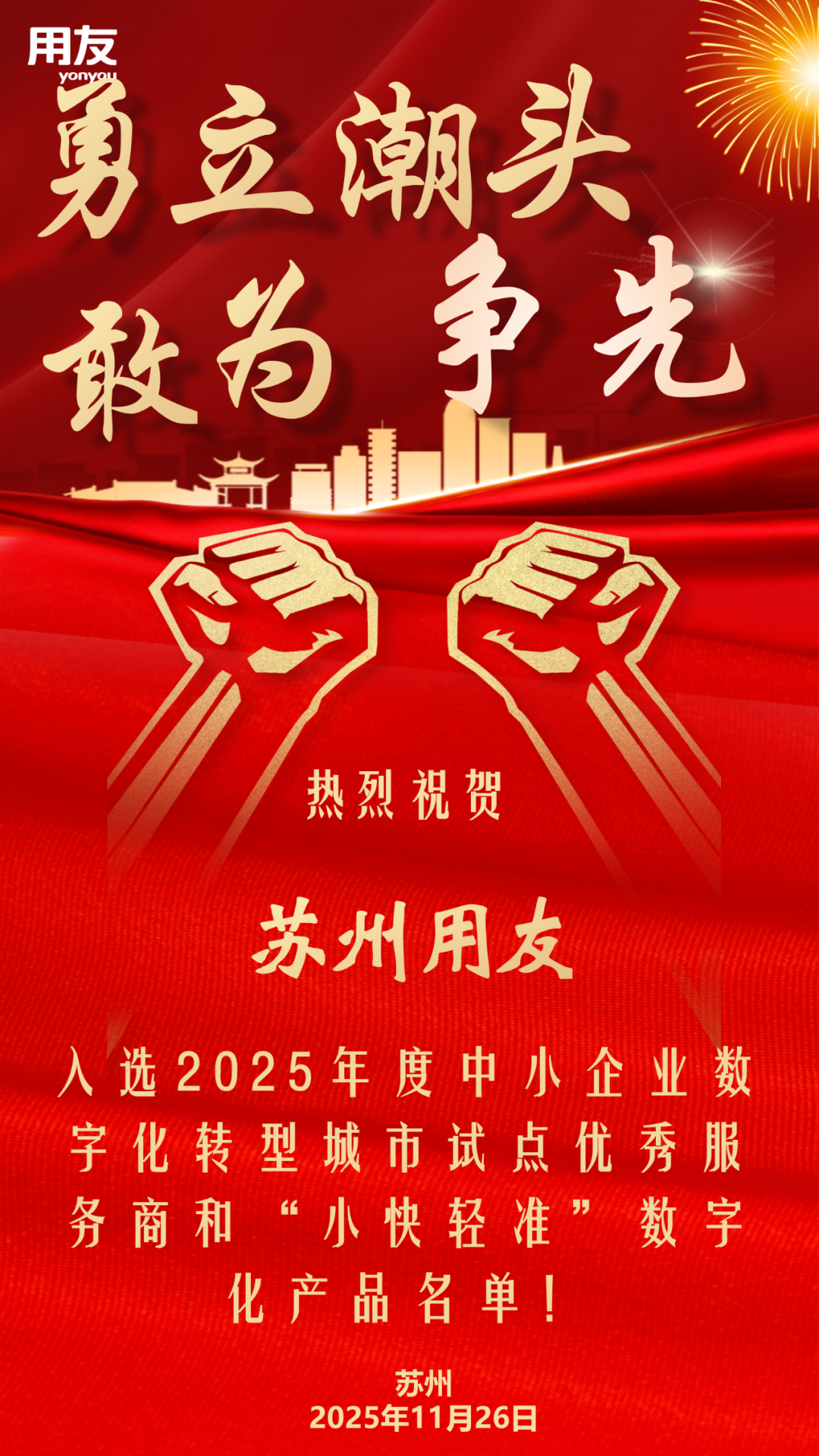 在此次公示中,苏州用友凭借突出的技术实力与丰富的行业服务经验,成功跻身 2025 年度中小企业数字化转型城市试点 9 家优秀服务商及 5 个优秀 “小快轻准” 数字化产品之列。