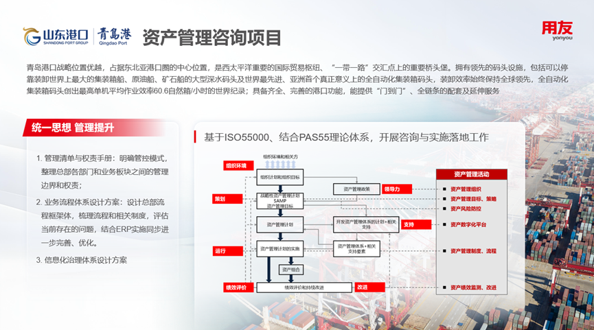 港口企业引入 ISO55000 标准,构建 “SEC” 绩效体系与风险防控体系,搭建智慧资产管理系统,实现资产实物与价值管理一体化